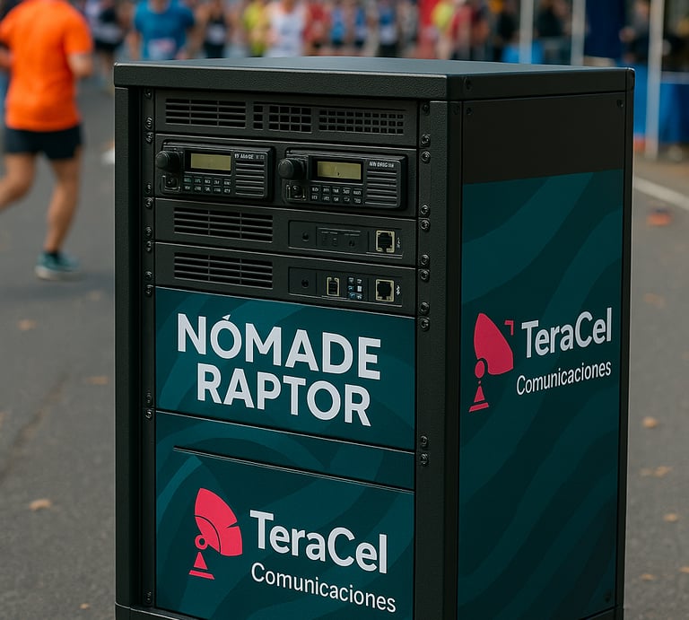 El Sistema Nómade Raptor de TeraCel es una solución portátil todo en uno que integra videovigilancia, redes y radio comunicación en un solo equipo compacto y robusto. Diseñado en un rack de 19 pulgadas con ruedas, está listo para desplegarse en minutos en eventos, campamentos mineros o cualquier entorno que necesite conectividad inmediata. Su estética profesional y su funcionalidad lo convierten en el aliado perfecto para mantener todo bajo control, donde sea que estés. Con el Raptor, llevas la tecnología de punta a donde más se la necesita.